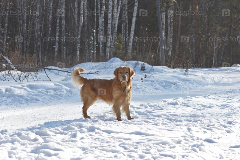 Собака зимой на прогулке