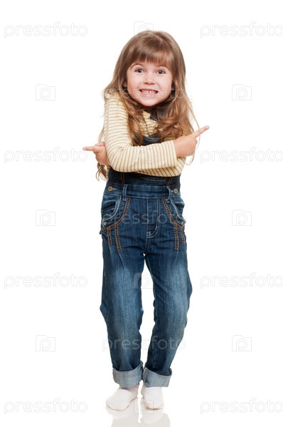 Веселая девочка на белом фоне