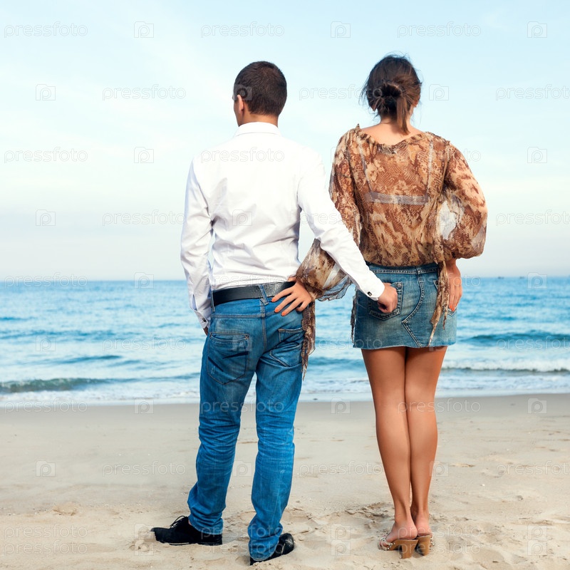 Молодая привлекательная пара на морском пляже
