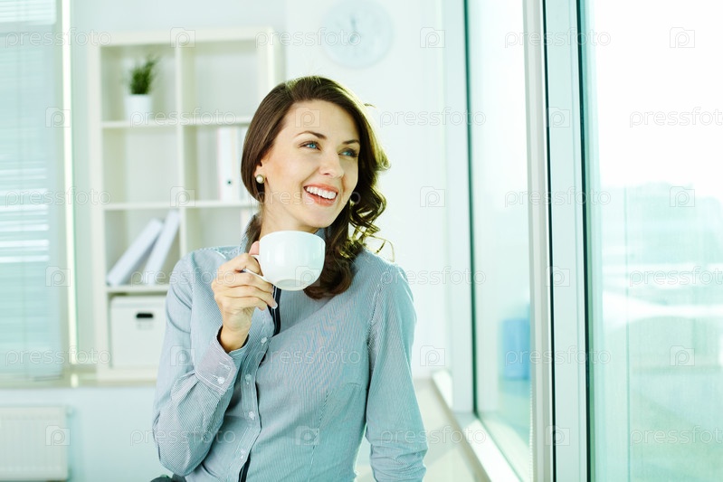 Деловая женщина с чашкой в офисе