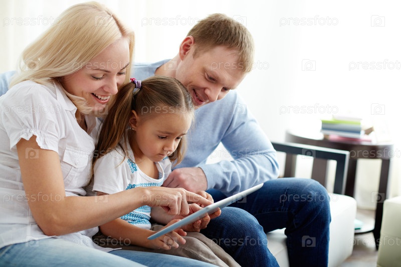 Счастливая семья на диване дома
