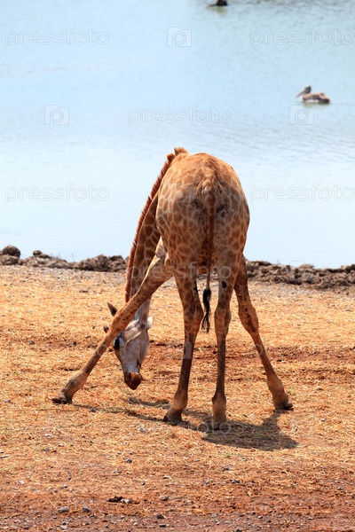 Жираф у водоема