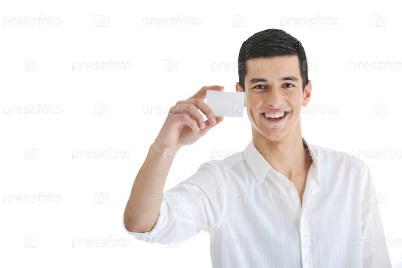Молодой мужчина с пустой визитной карточкой