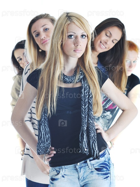 Группа девушек на белом фоне