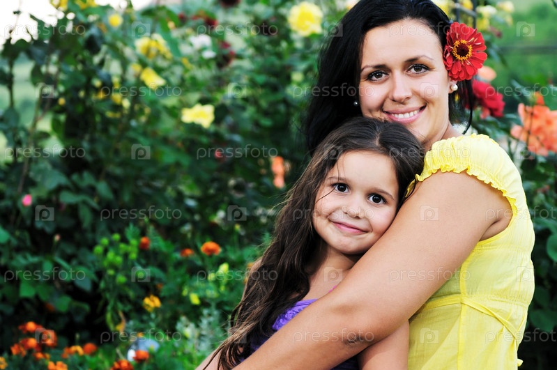 Красивая мама и дочь на открытом воздухе