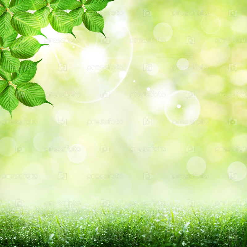 Абстрактный фон с зелеными листьями и травой