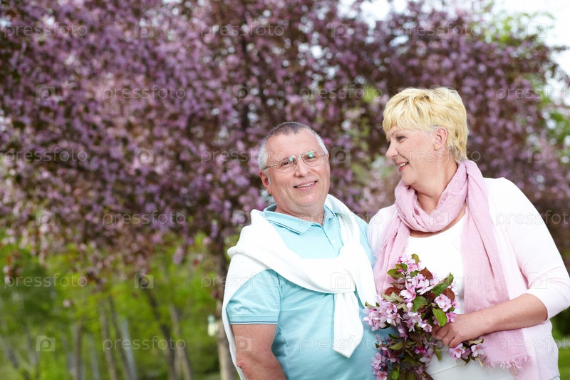 Пожилая пара в парке весной
