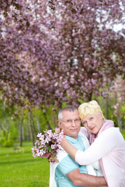 Любящая пожилая пара в парке весной
