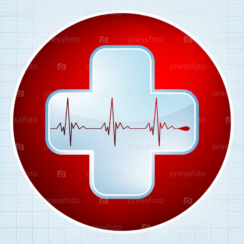 Векторное изображение кардиограммы сердца на красной кнопке с белым крестом