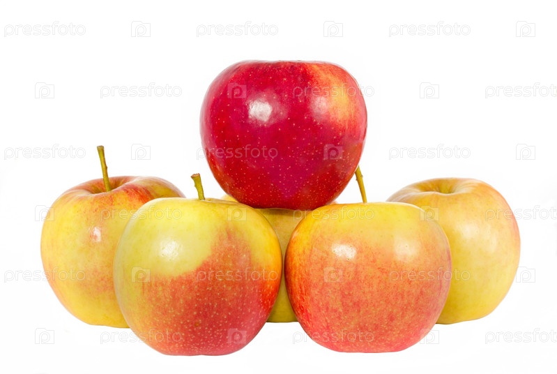 Красные и желтые яблоки на белом фоне