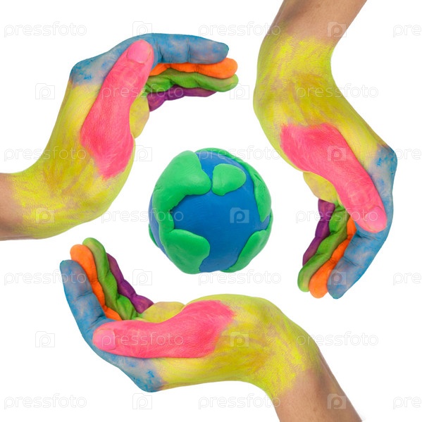 Разноцветные руки вокруг земного шара