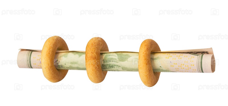 Бублики с долларом на белом фоне
