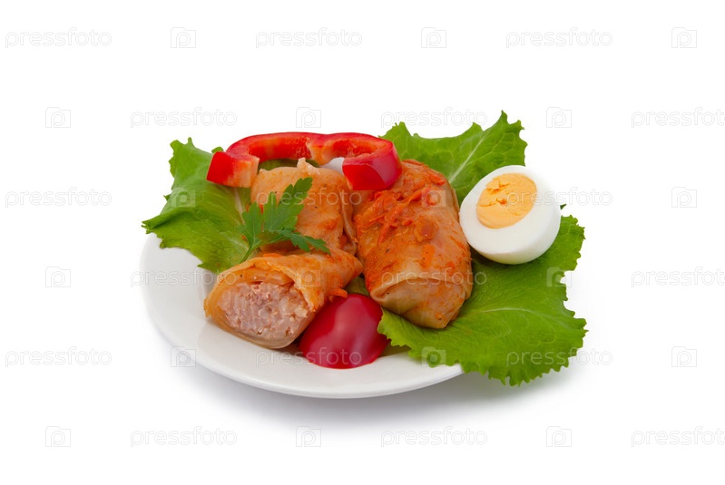 Фаршированная капуста на тарелке, изолировано на белом фоне
