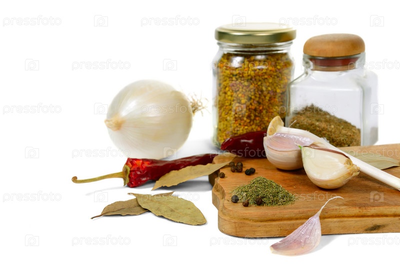 Овощи и специи, изолировано на белом фоне