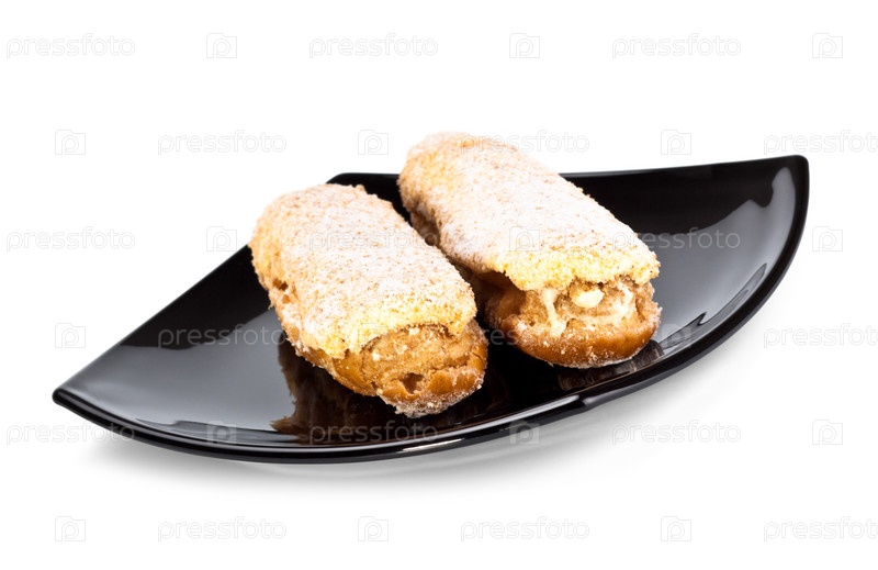 Эклеры на черной тарелке
