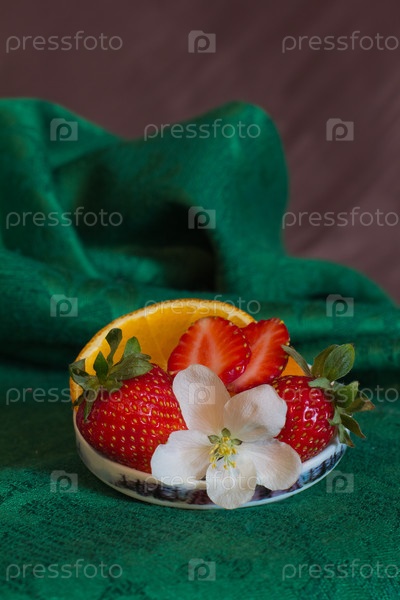 Десерт с долькой апельсина и клубникой