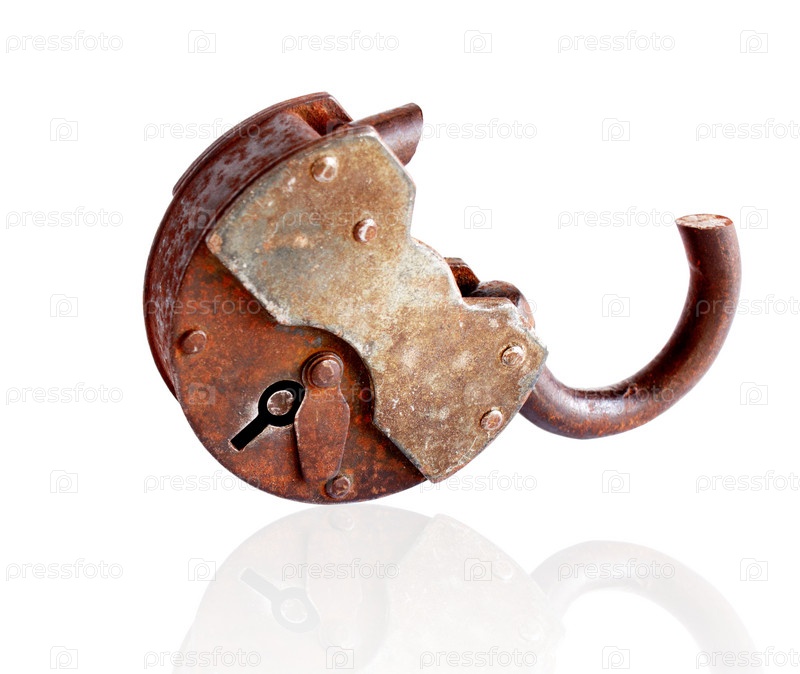 Старый ржавый замок на белом фоне