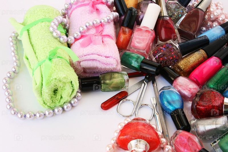 Принадлежности для маникюра на сером фоне