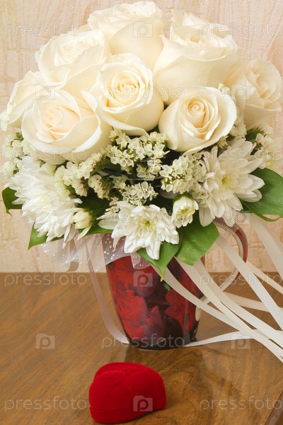 Букет цветов и коробочка с украшением