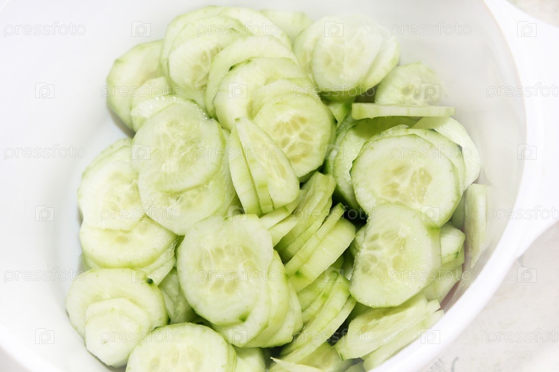 Нарезанный огурец в салатнице