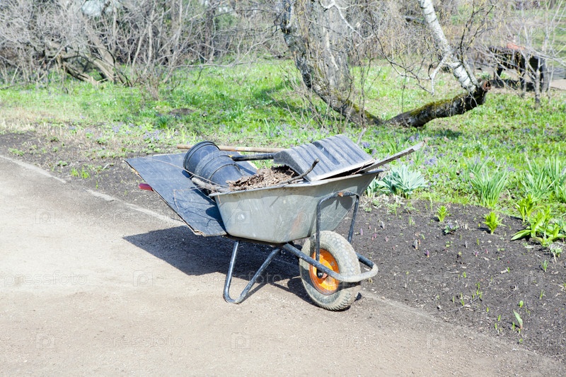 Тачка с инструментами в саду