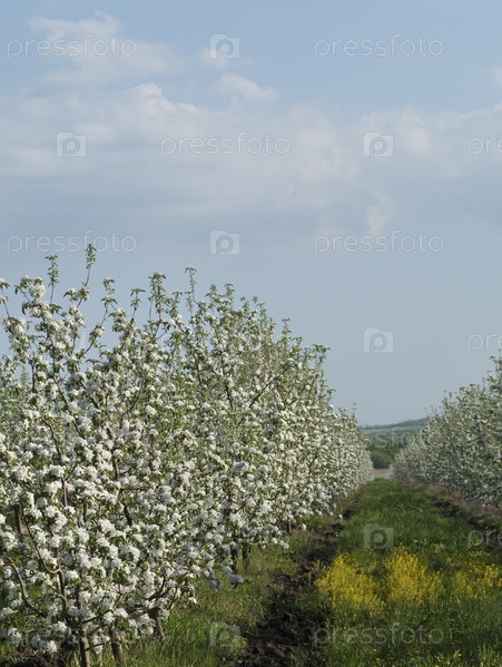 Цветущие яблони в саду