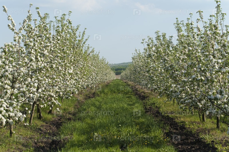 Цветущие яблони в саду