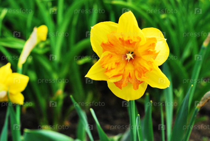 Желтый нарцисс на клумбе