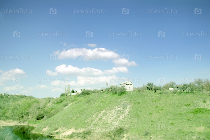 Летний пейзаж с холмами и небом