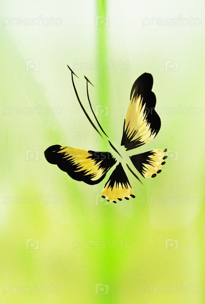 Бабочка на ярком зеленом фоне