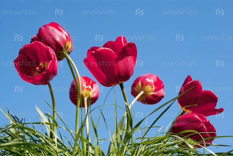Весенние тюльпаны на фоне голубого неба