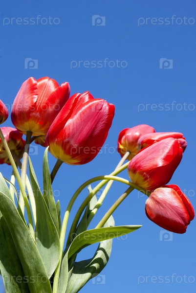 Красные тюльпаны на фоне голубого неба