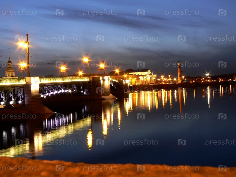 Вид на мост через Неву в ночном Санкт-Петербурге