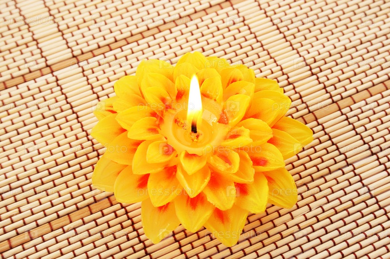Желтый цветок-свеча на фоне бамбуковой салфетки