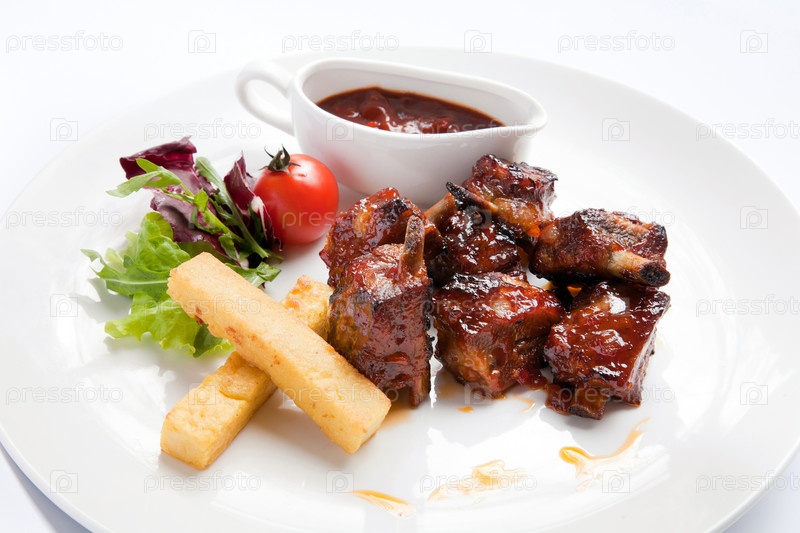 Ребра на гриле с овощами и соусом барбекю