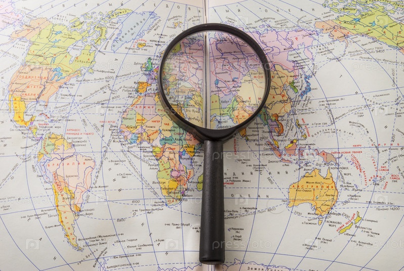 Лупа на карте мира