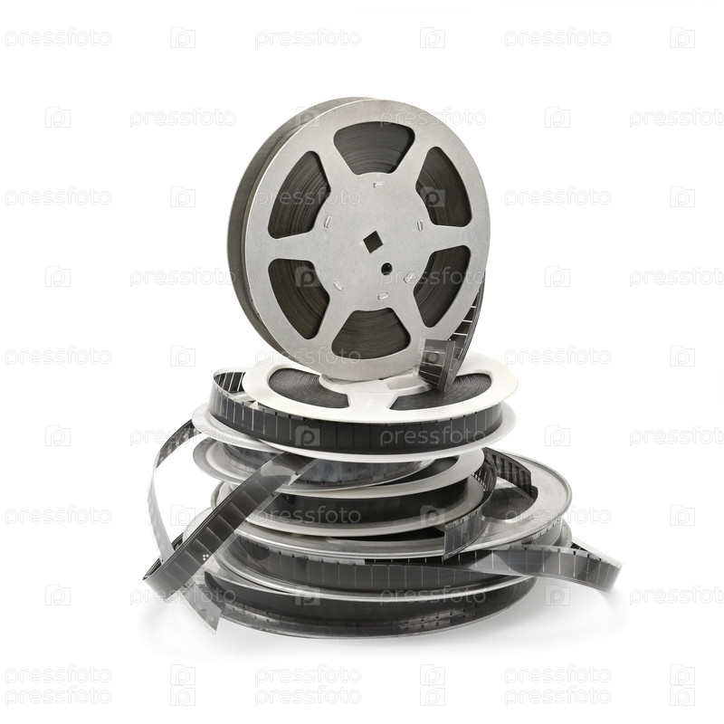 Старые кинопленки на белом фоне