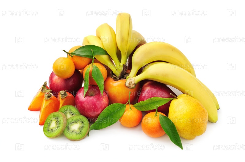 Различные фрукты на белом фоне