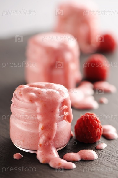 Свежий йогурт с малиной