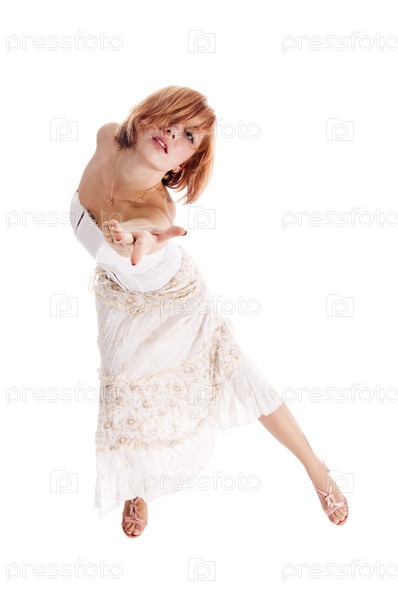 Молодая танцовщица на белом фоне