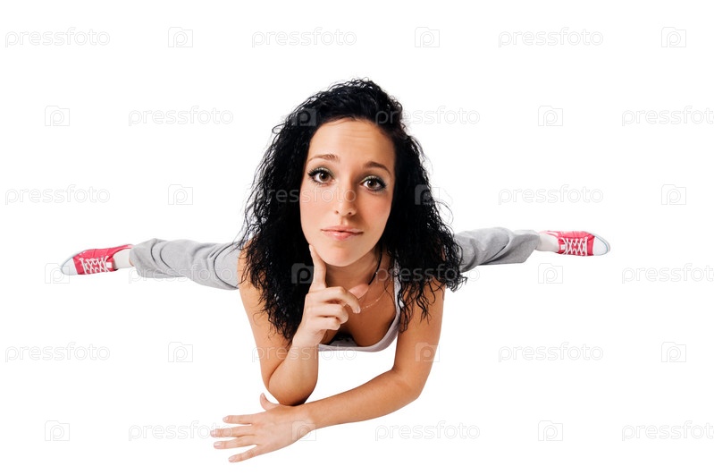 Красивая девушка-брюнетка на белом фоне