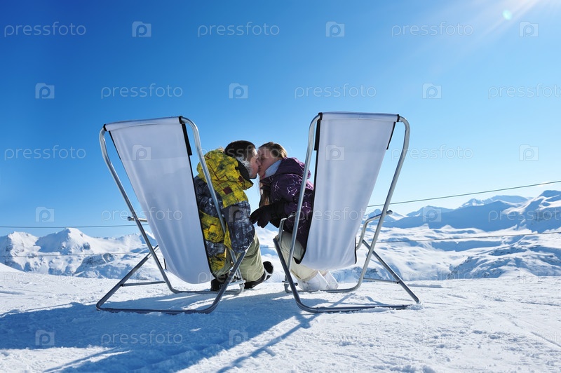 Пара в горах Валь д’Изер. Альпы, Франция