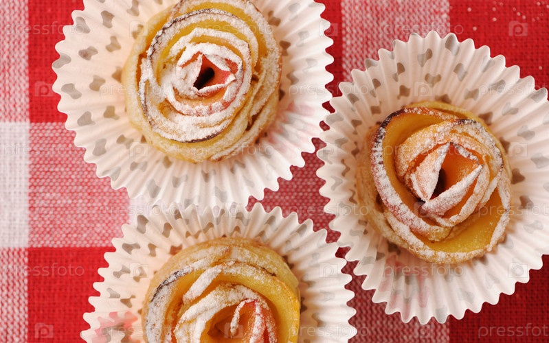 Вкусные яблочные пироги на красной скатерти
