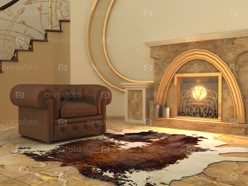 Кресло у камина в современном интерьере