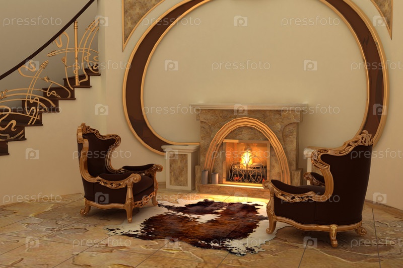Кресла у камина в современном интерьере