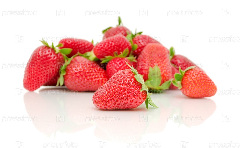 Спелая клубника на белом фоне с отражением