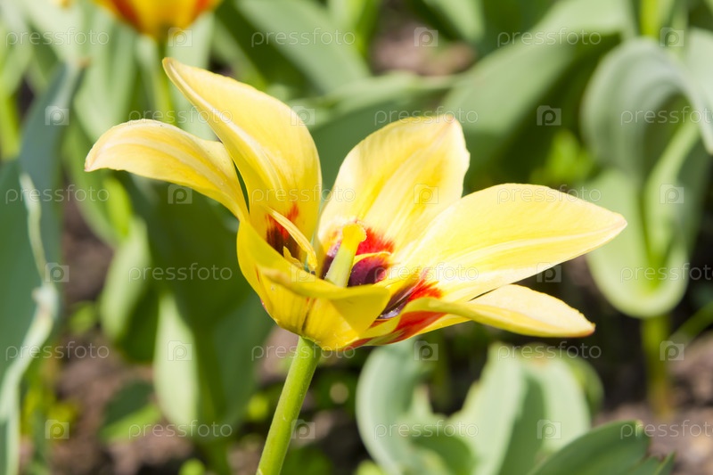 Желтый тюльпан в саду в солнечный день