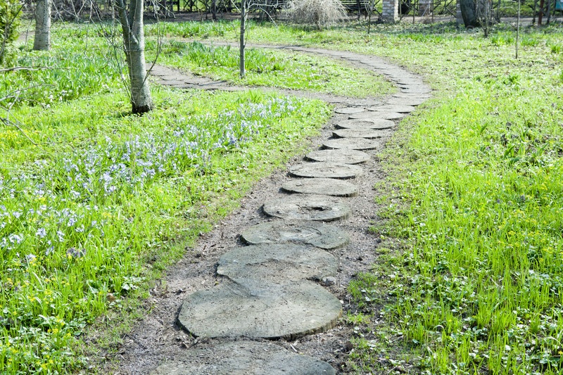 Деревянные кольца на дорожке в саду