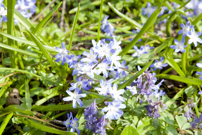 Цветы пролески в траве
