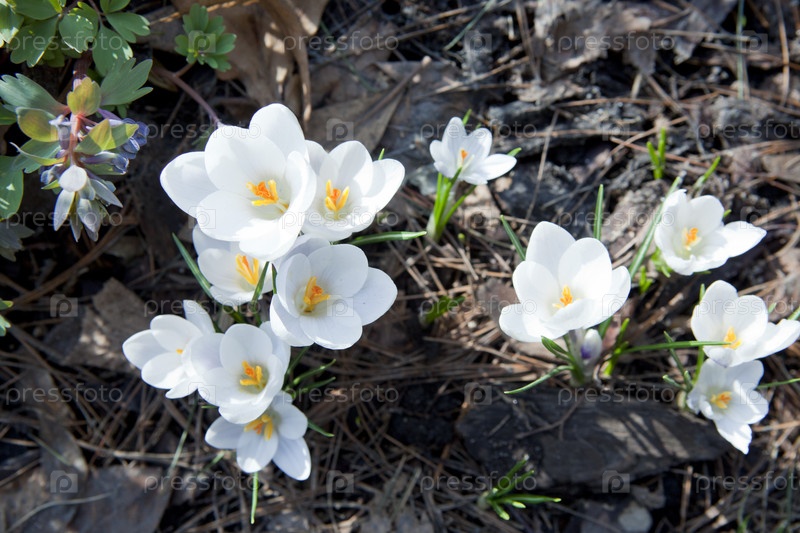 Белый крокус (шафран) в начале весны